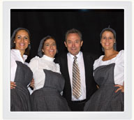 Pipo con integrantes de elenco y amigos. Al fondo una encantadora maqueta de Torralba