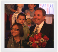 Pipo con sus nietos. Detr�s Mar�a Antonia Fernandez de Mera y su hija Sara